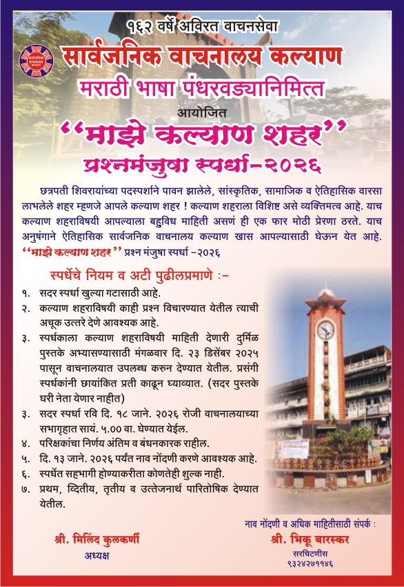 "माझे कल्याण शहर" प्रश्नमंजुषा स्पर्धा २०२६